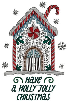 Have a Holly Jolly Christmas Ornate Gingerbread House Applique Machine Embroidery Design Digitized Pattern