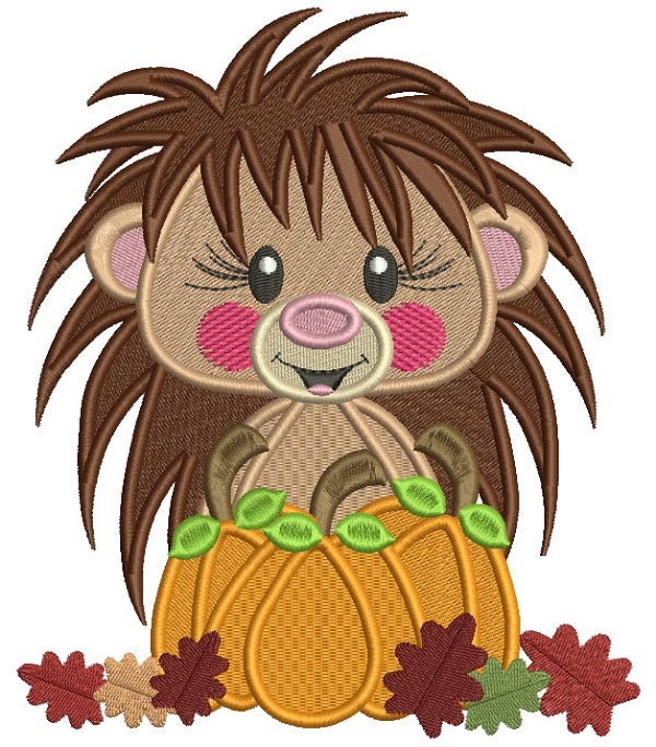 Hedgehog Holding Pumpkin With Leaves Thanksgiving Filled Machine Embroidery Design Digitized Pattern