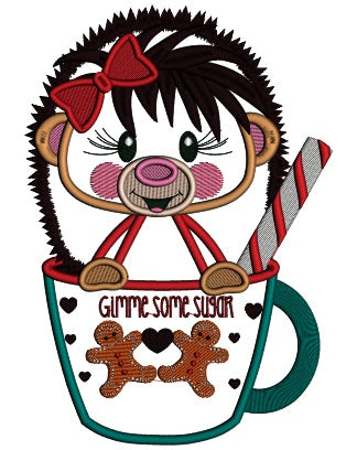Hedgehog Sitting Inside a Cup Applique Christmas Machine Embroidery Design Digitized Pattern