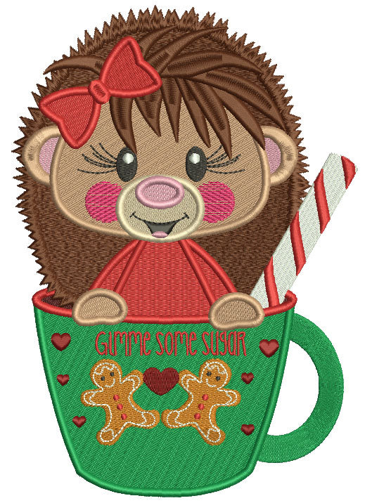 Hedgehog Sitting Inside a Cup Filled Christmas Machine Embroidery Design Digitized Pattern