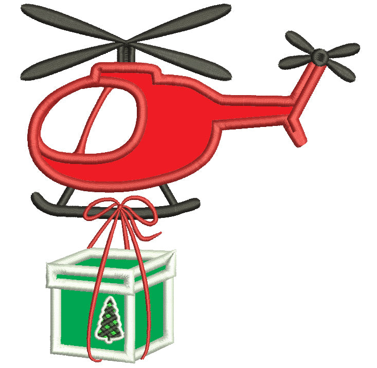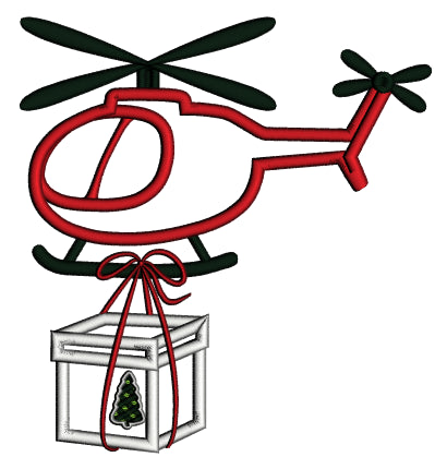Helicopter Carrying Christmas Presents Applique Machine Embroidery Design Digitized Pattern