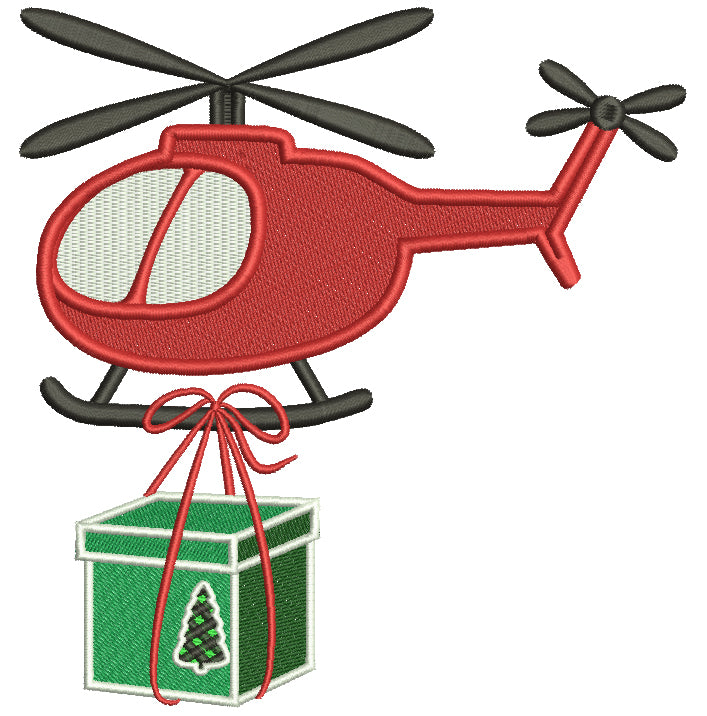 Helicopter Carrying Christmas Presents Filled Machine Embroidery Design Digitized Pattern