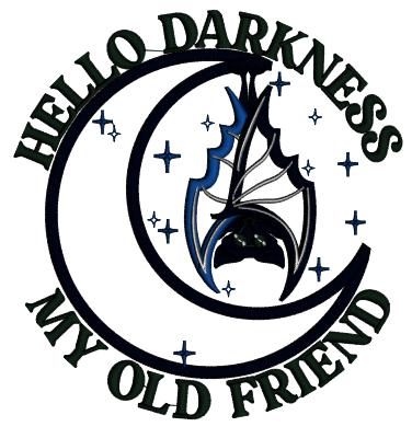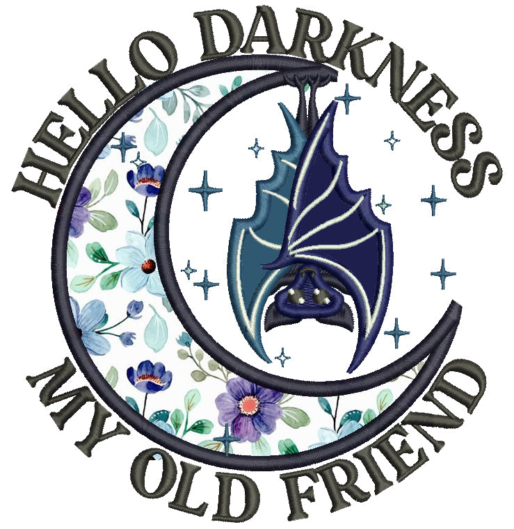 Hello Darkness My Old Friend Bat Hanging Down From The Moon Halloween Applique Machine Embroidery Design Digitized Pattern