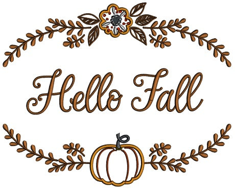 Hello Fall Flower Frame With a Pumpkin Applique Machine Embroidery Design Digitized Pattern