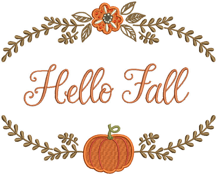Hello Fall Flower Frame With a Pumpkin Filled Machine Embroidery Design Digitized Pattern