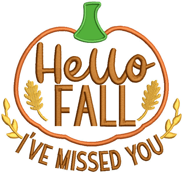 Hello Fall I've Missed You Pumpkin Applique Machine Embroidery Design Digitized Pattern