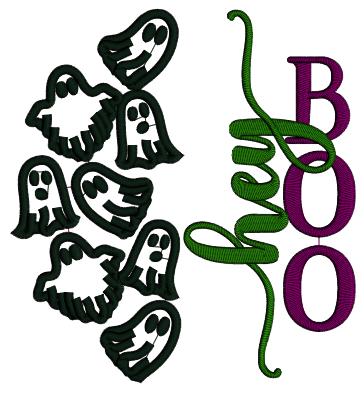 Hey Boo Flying Ghosts Halloween Applique Machine Embroidery Design Digitized Pattern