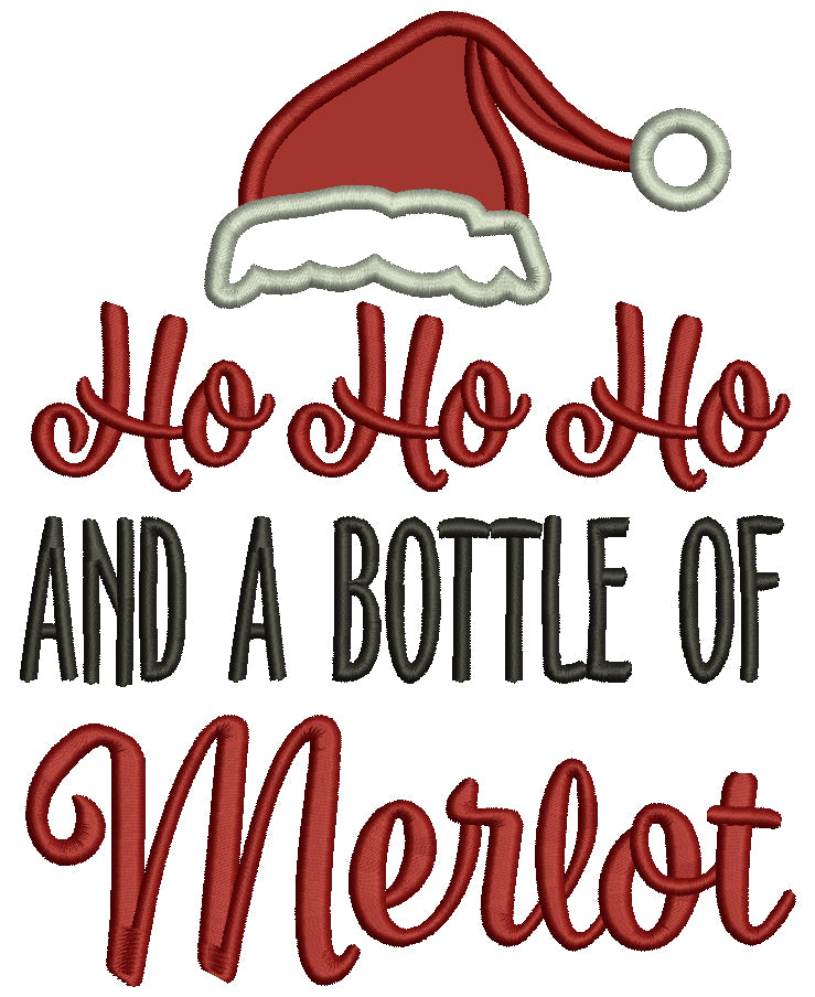 Ho Ho Ho And a Bottle Of Merlot Christmas Applique Machine Embroidery Design Digitized Pattern