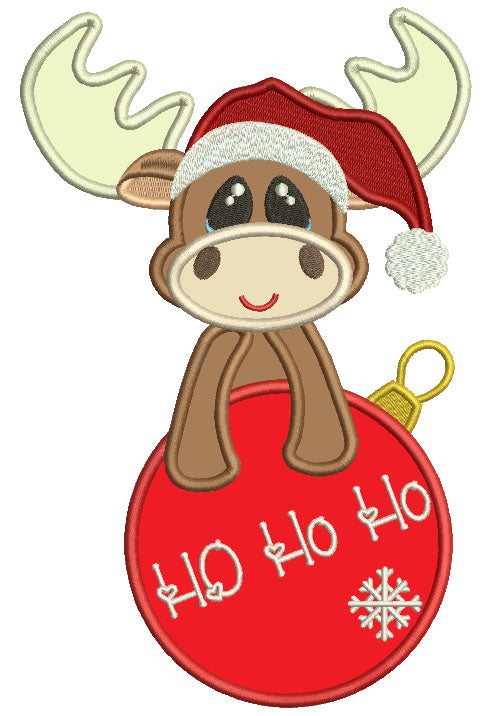 Ho Ho Ho Cute Moose Wearing Santa Hat Christmas Applique Machine Embroidery Design Digitized Pattern