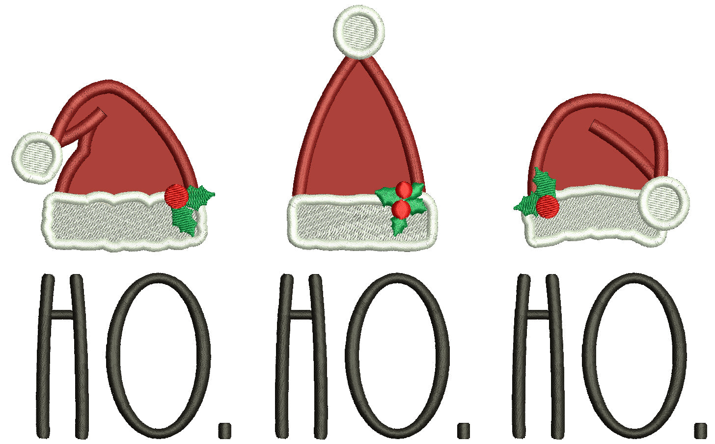 Ho Ho Ho Three Christmas Hats Applique Machine Embroidery Design Digitized Pattern