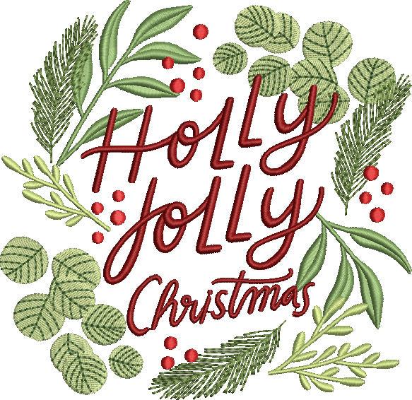 Holly Holly Christmas Wreath Filled Machine Embroidery Design Digitized Pattern