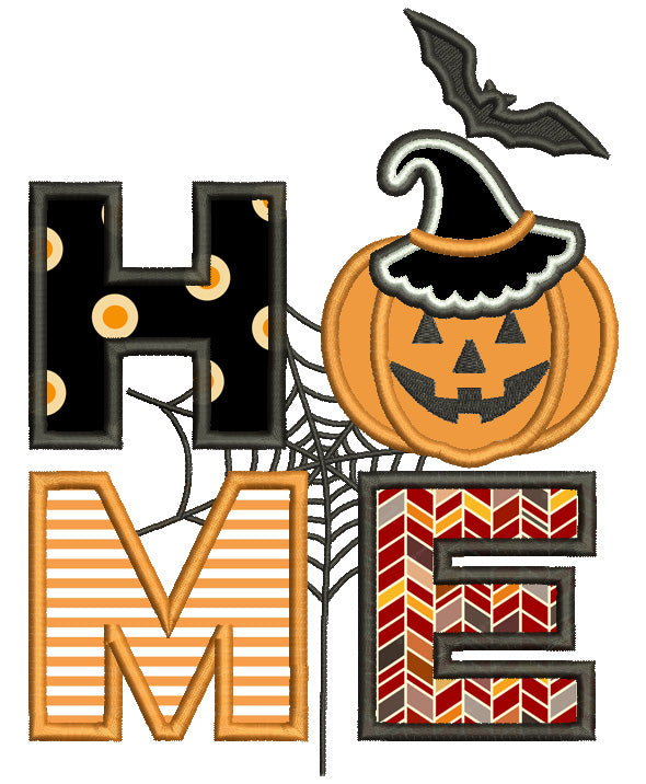 HOME Halloween Pumpkin And Spider Web Applique Machine Embroidery Design Digitized Pattern