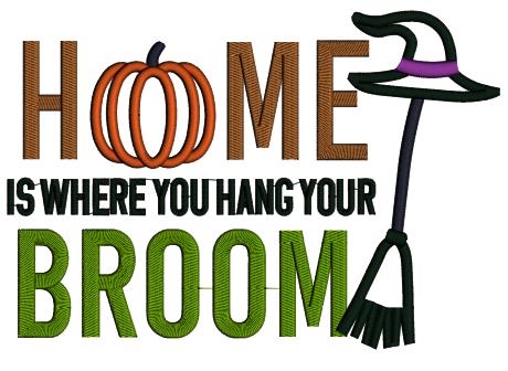 Home is Where You Hang Your Broom Halloween Applique Machine Embroidery Design Digitized Pattern