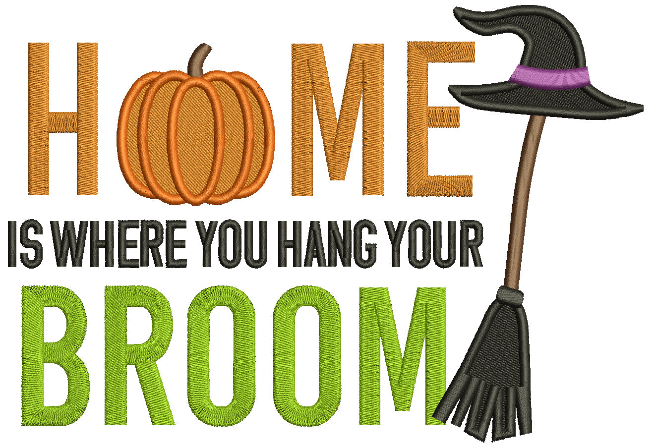 Home is Where You Hang Your Broom Halloween Filled Machine Embroidery Design Digitized Pattern