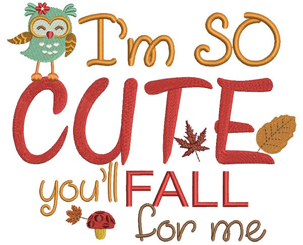 I'm So Cute You'll Fall For Me Cute Owl Filled Machine Embroidery Design Digitized Pattern