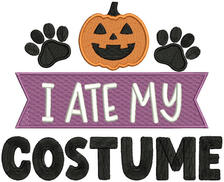 I Ate My Costume Pumpkin And Paws Halloween Filled Machine Embroidery Design Digitized Pattern