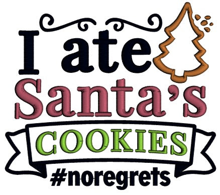 I Ate Santa's Cookies No Regrets Christmas Applique Machine Embroidery Design Digitized Pattern