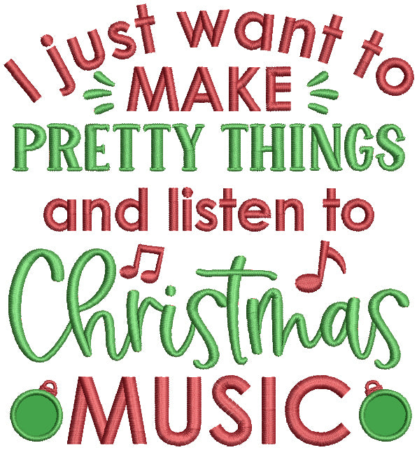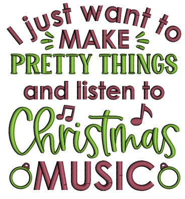 I Just Want To Make Pretty Things And Listen To Christmas Music Applique Machine Embroidery Design Digitized Pattern