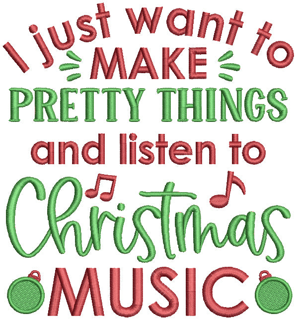 I Just Want To Make Pretty Things And Listen To Christmas Music Filled Machine Embroidery Design Digitized Pattern