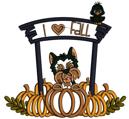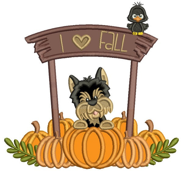 I Love Fall Little Dog With Pumpkins Fall Thanksgiving Applique Machine Embroidery Design Digitized Pattern