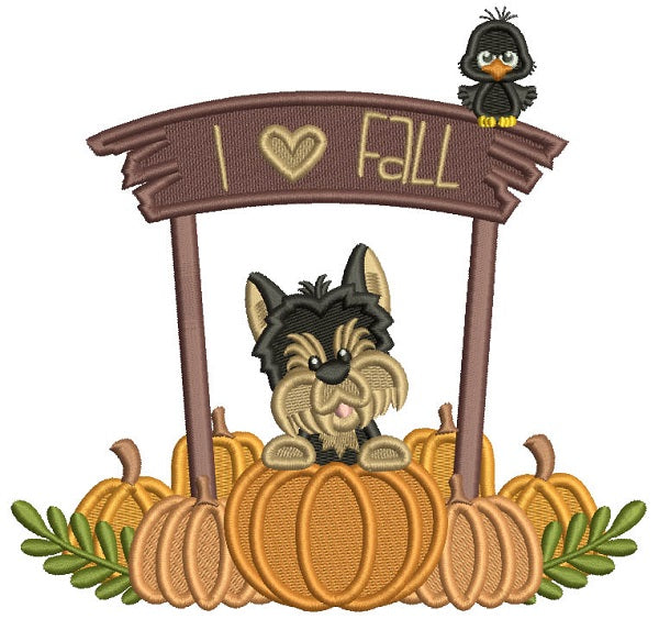 I Love Fall Little Dog With Pumpkins Fall Thanksgiving Filled Machine Embroidery Design Digitized Pattern