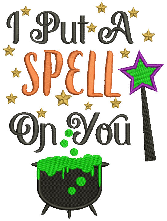 I Put A Spell On You Halloween Cauldron Filled Machine Embroidery Design Digitized Pattern