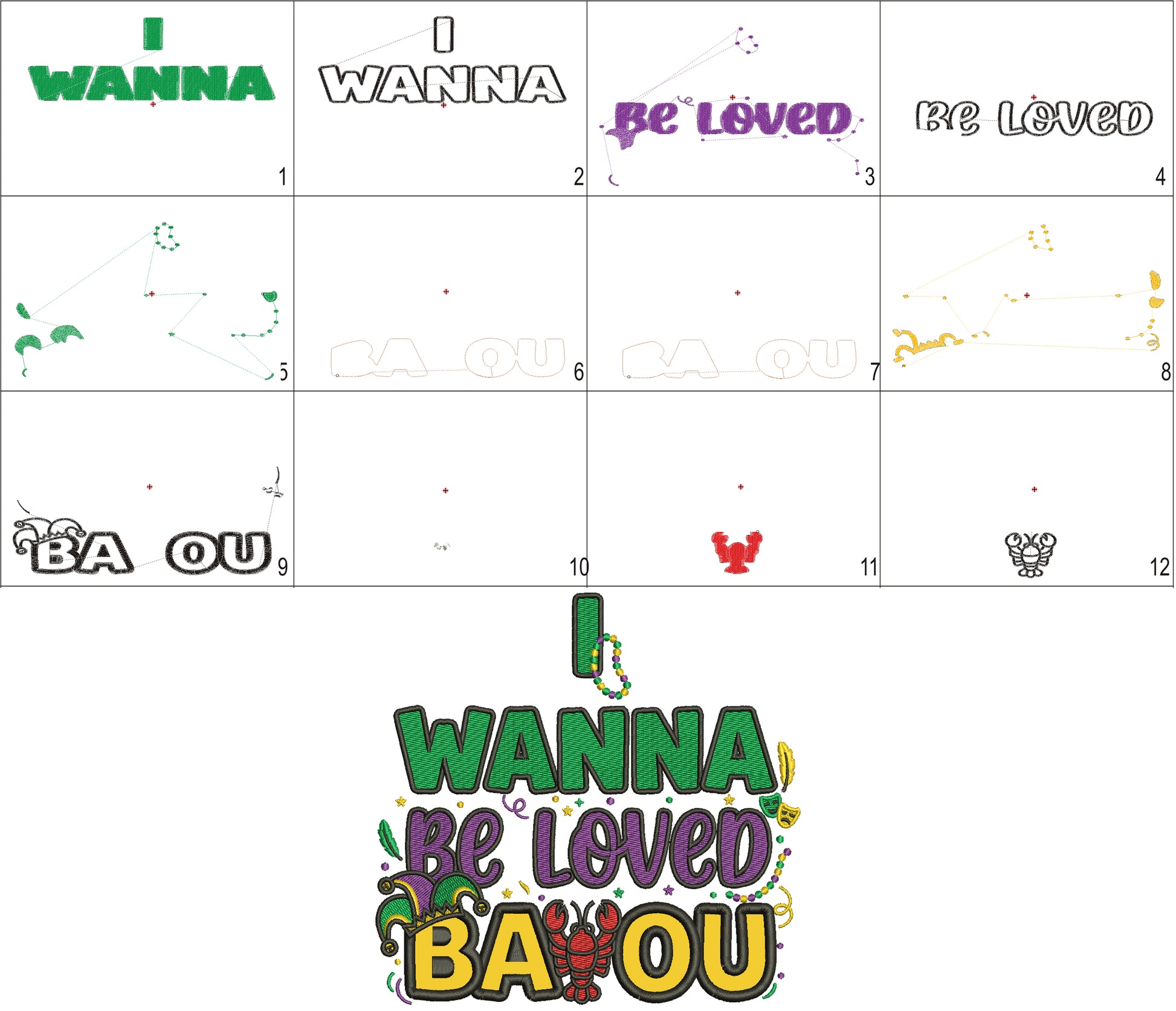 🦞🎭 “I Wanna Be Loved BAOU” – Celebrate Mardi Gras with this playful Lobster Mardi Gras applique machine embroidery design! Perfect for adding festive flair and texture to your projects.