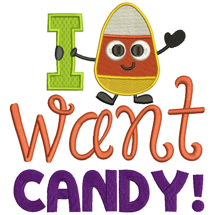 I Want Candy Candy Corn Halloween Filled Machine Embroidery Digitized Design Pattern