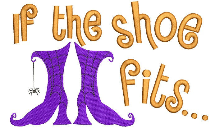 If the shoe fits witch boots and spider Halloween Filled Machine Embroidery Design Digitized Pattern