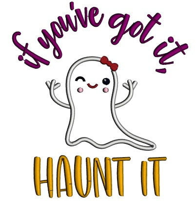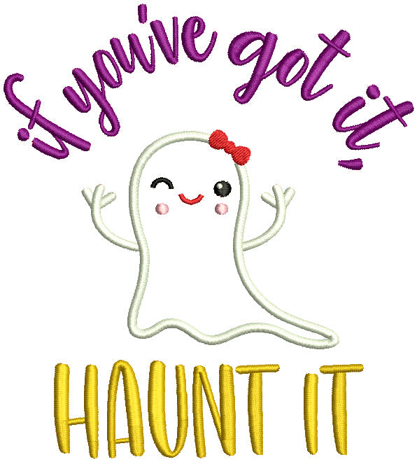 If You've Got It Haunt It Cute Girl Ghost Wearing a Bow Halloween Applique Machine Embroidery Design Digitized Pattern