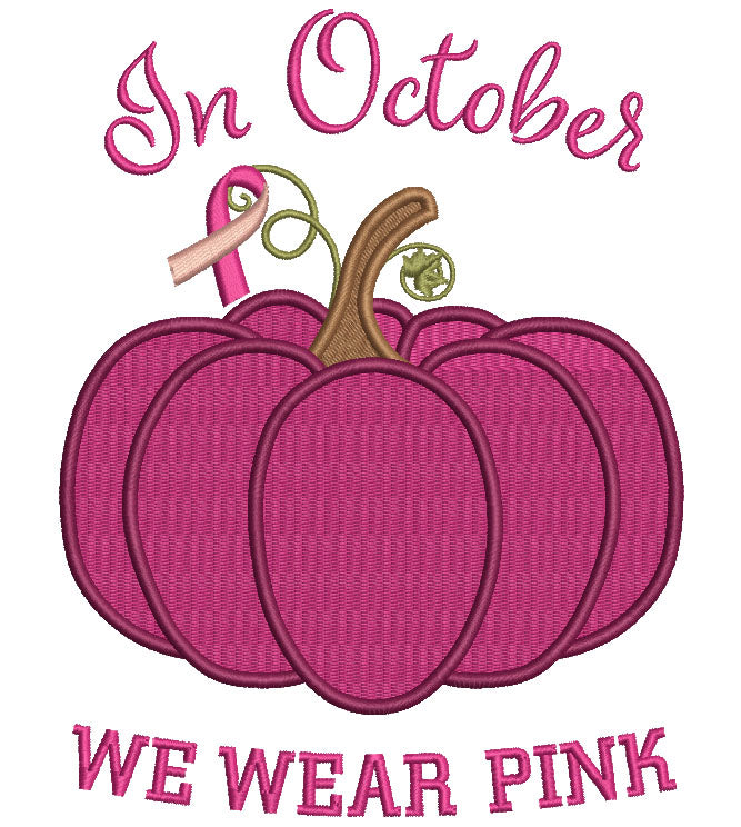 In October We Wear Pink Pumpkin Breast Cancer Awareness Filled Machine Embroidery Design Digitized Pattern