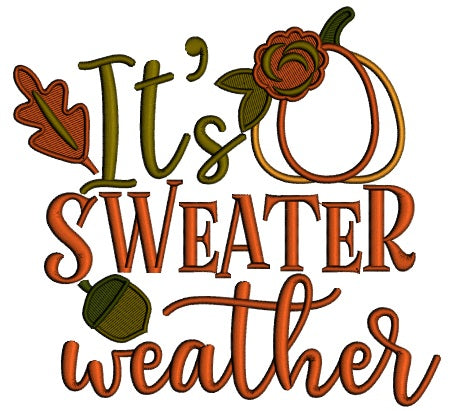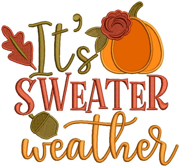 It's A Sweater Weather Fall Pumpkin Thanksgiving Applique Machine Embroidery Design Digitized Pattern