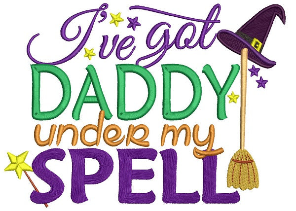 I've Got Daddy Under My Spell Witch's Hat Halloween Filled Machine Embroidery Design Digitized Pattern