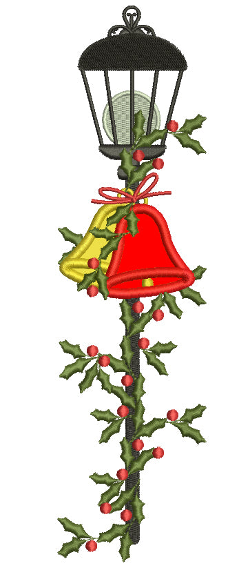 Jingle Bells on a Light Pole Christmas Applique Machine Embroidery Design Digitized Pattern