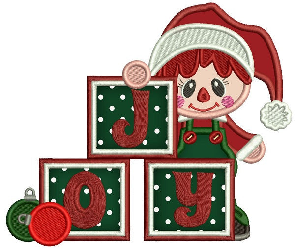 JOY Little Boy With Blocks Applique Christmas Machine Embroidery Design Digitized Pattern