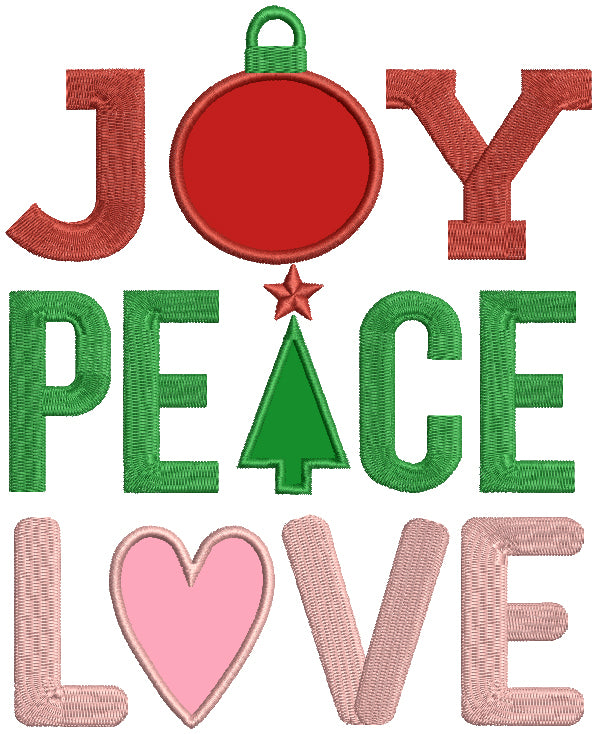 Joy Peace Love Christmas Applique Machine Embroidery Design Digitized Pattern
