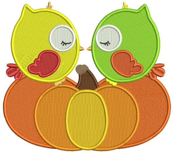 Kissing Birds Sitting On The Pumpkin Filled Machine Embroidery Design Digitized Pattern