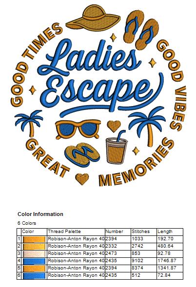 ๐ฏโโ๏ธ๐ถ๏ธ๐ดLadies Escape Good Times Good Vibes Great Memories Flip Flops and Sunglasses Vacation Filled Machine Embroidery Design Digitized Pattern