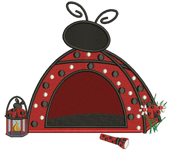 Ladybug Camping Tent With a Lantern Filled Machine Embroidery Design Digitized Pattern