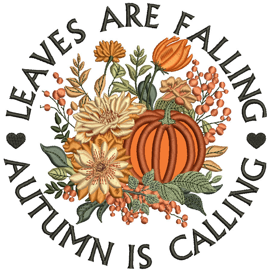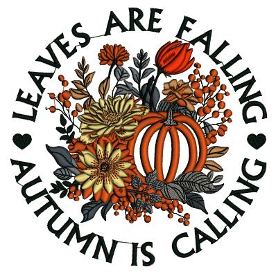 Leaves Are Falling Autumn Is Calling Pumpkin Floral Arrangement Applique Machine Embroidery Design Digitized Pattern