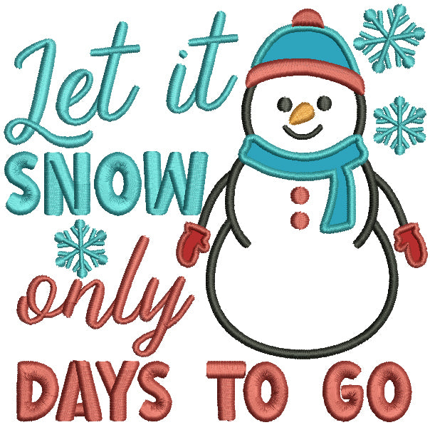 Let Is Snow Only Days To Go Snowman Christmas Applique Machine Embroidery Design Digitized Pattern