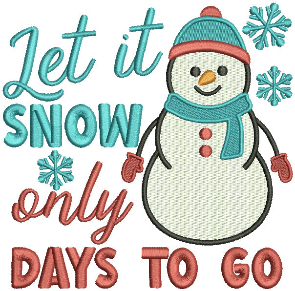 Let Is Snow Only Days To Go Snowman Christmas Filled Machine Embroidery Design Digitized Pattern
