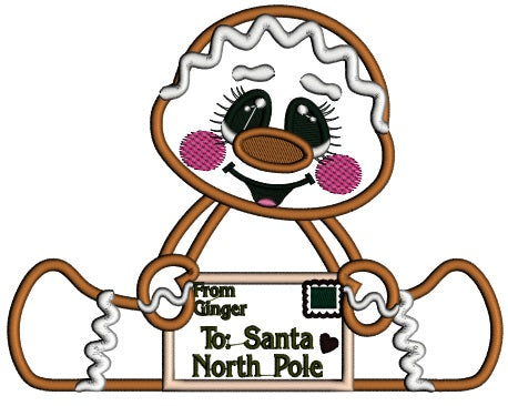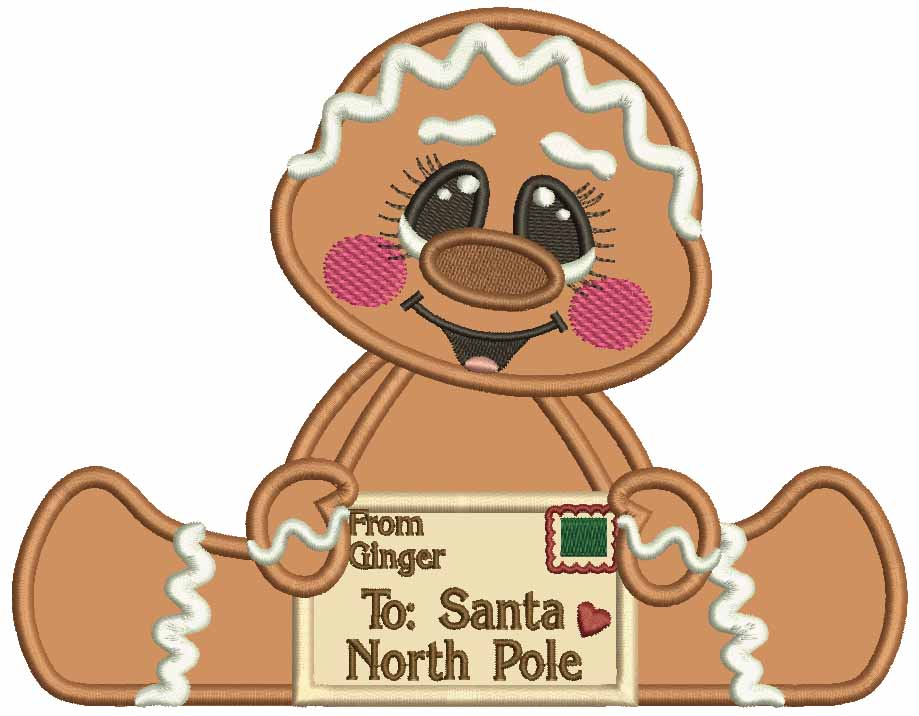Letter From Gingerbread Man To Santa North Pole Christmas Applique Machine Embroidery Design Digitized Pattern