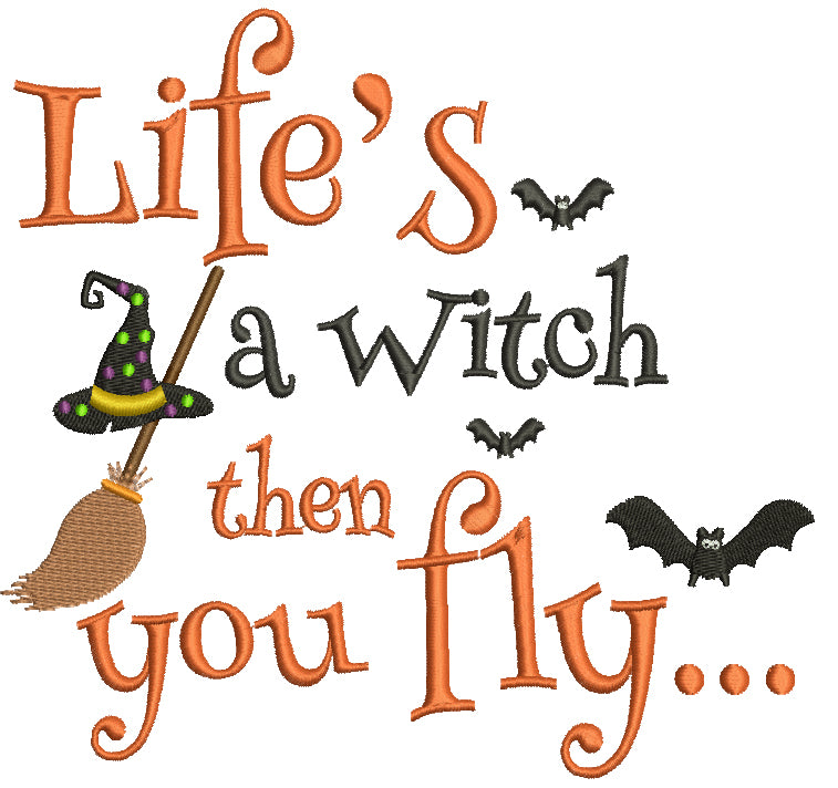 Life's a Witch and then You Fly Halloween Filled Machine Embroidery Digitized Design Pattern