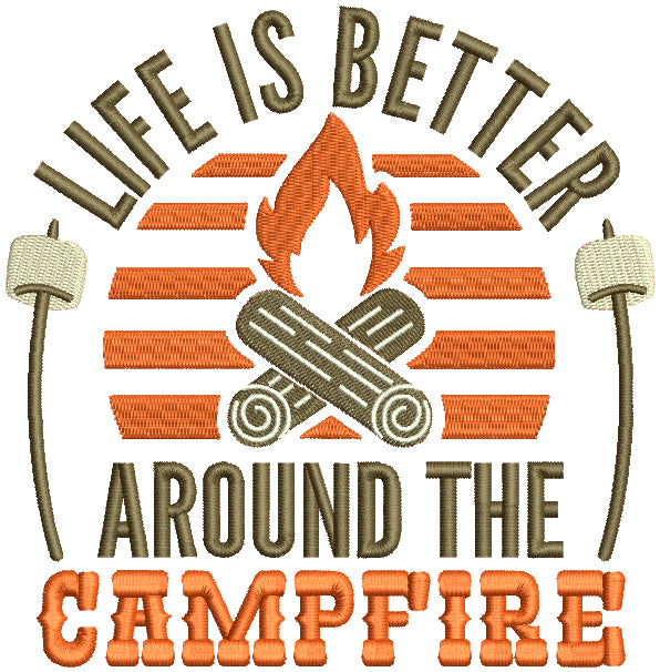 Life Is Better Around The Campfire With Marshmallows Filled Machine Embroidery Design Digitized Pattern