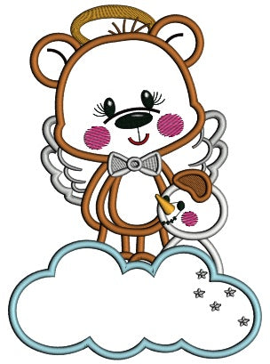 Little Bear ANgel On The Cloud With a Snowman Applique Christmas Machine Embroidery Design Digitized Pattern