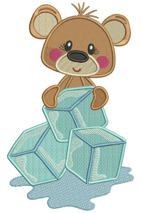 Little Bear Sitting On Ice Cubes Filled Machine Embroidery Digitized Design Pattern
