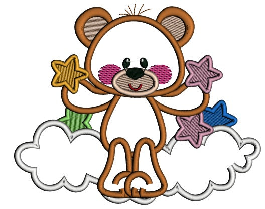 Little Bear Sitting On The Cloud Holding Stars Applique Machine Embroidery Design Digitized Pattern