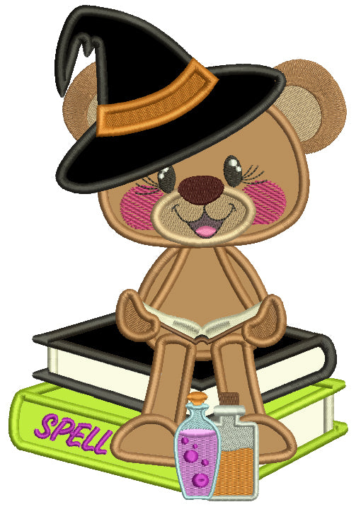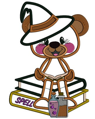 Little Bear Wizard With Spell Books Applique Halloween Machine Embroidery Design Digitized Pattern