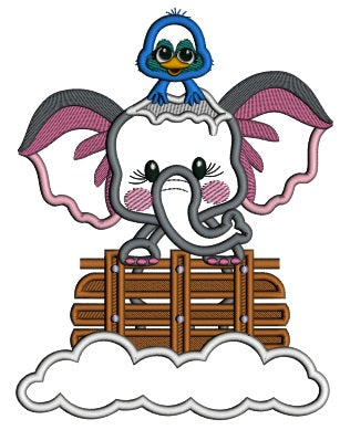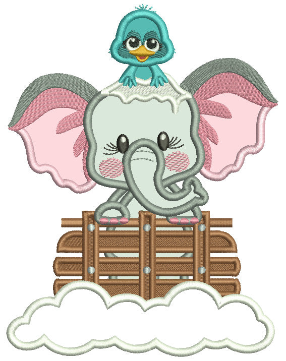 Little Bird Sitting On Baby Elephant And Snow Christmas Applique Machine Embroidery Design Digitized Pattern